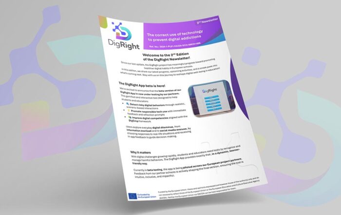 The DigRight project aims to develop a digital, innovative, and interactive tool (App) to assist teachers in preventing, identifying, and addressing digital addictions. It also seeks to enhance digital skills by leveraging the DigComp framework, empowering students to become digitally competent through engaging, gamified real-life scenarios.